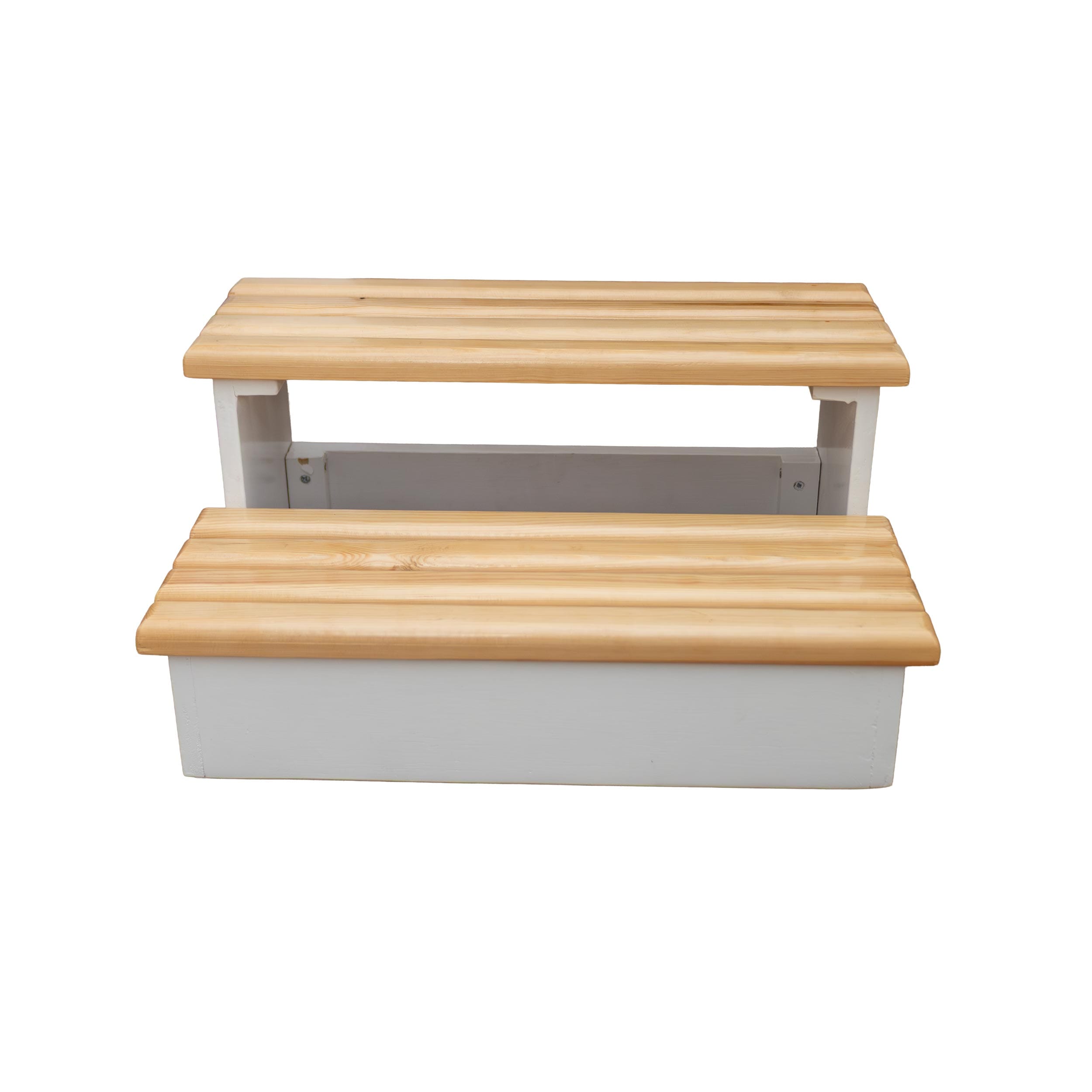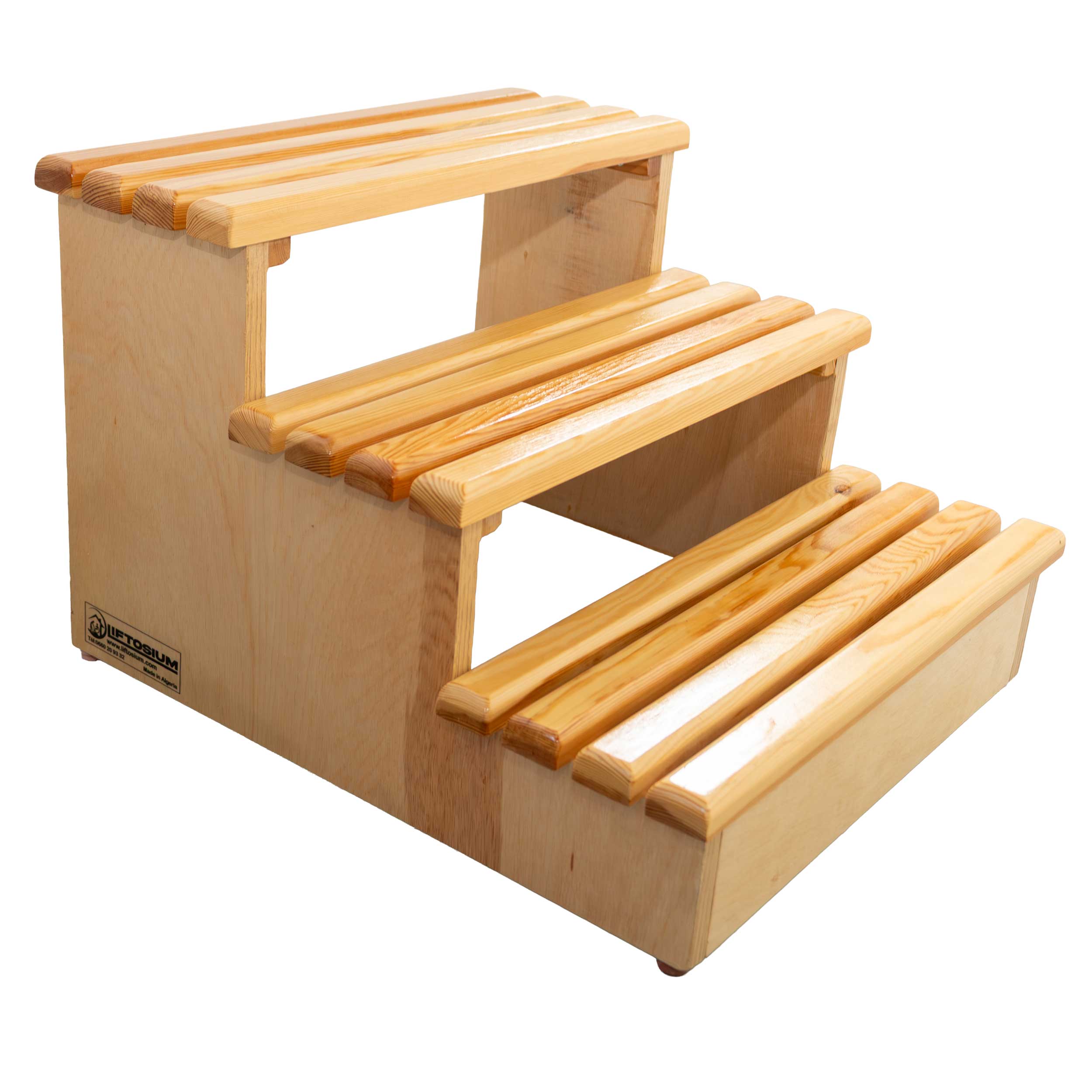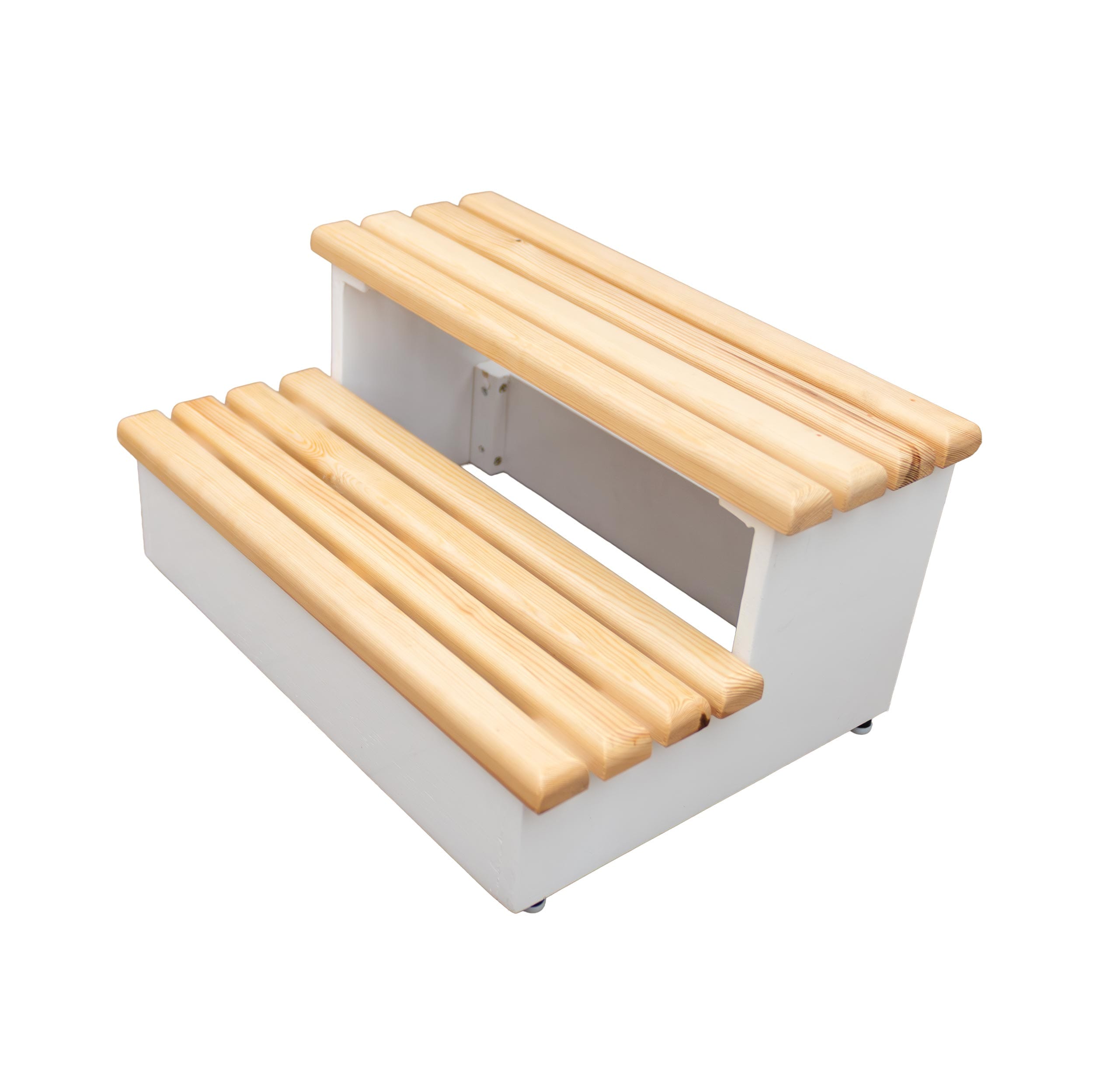 Fabriqué en bois laqué, il garantit une excellente stabilité, même lors d’une utilisation intensive. Les marches, réalisées en bois rouge et vernies, assurent une surface antidérapante, confortable et facile à entretenir.