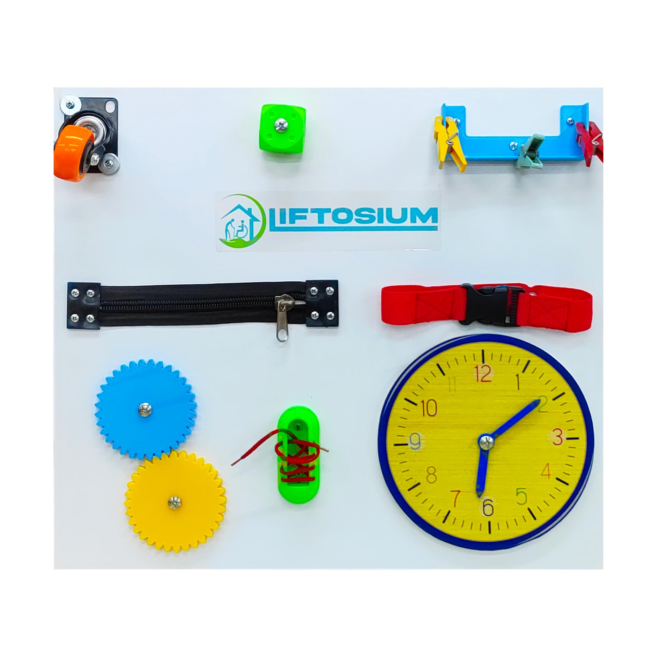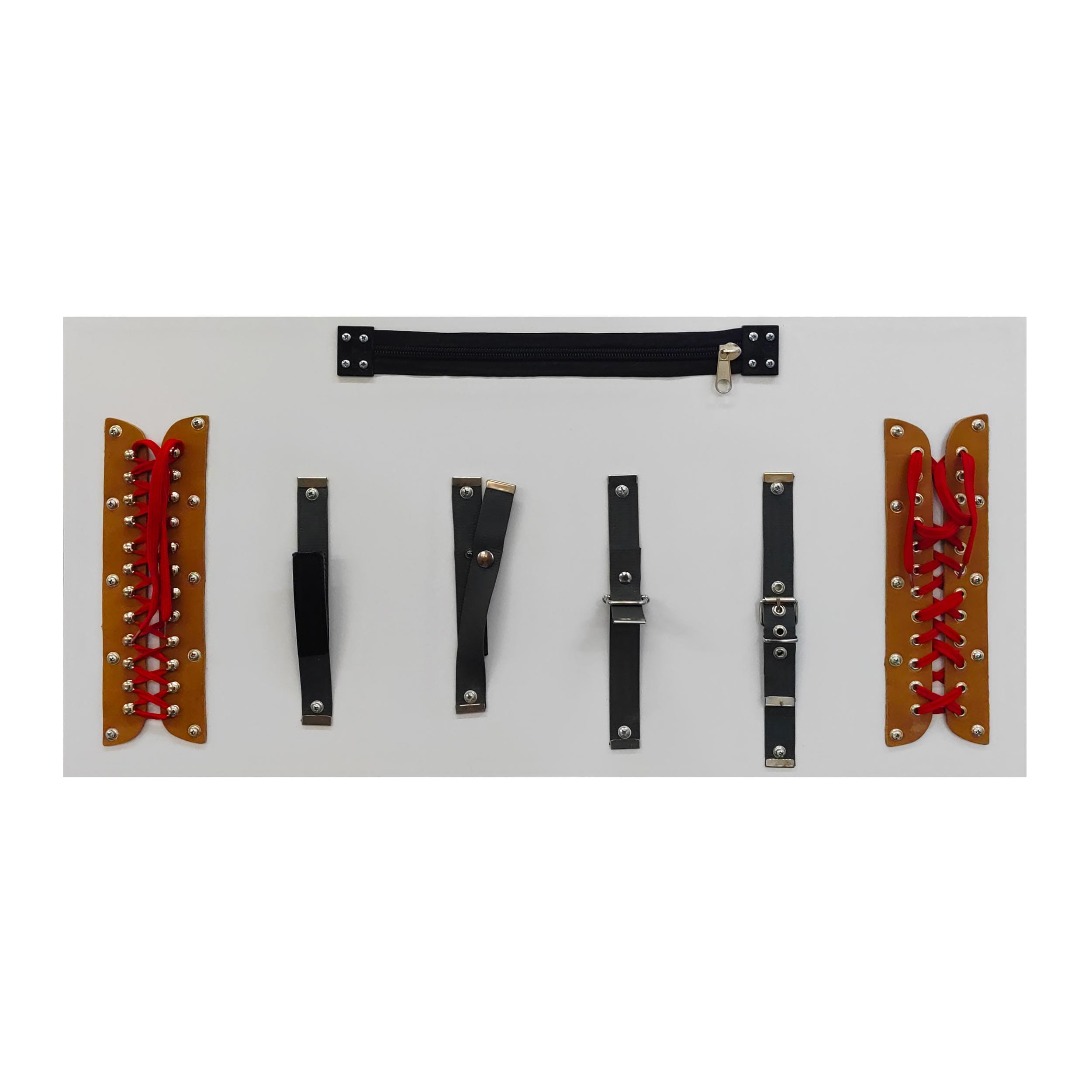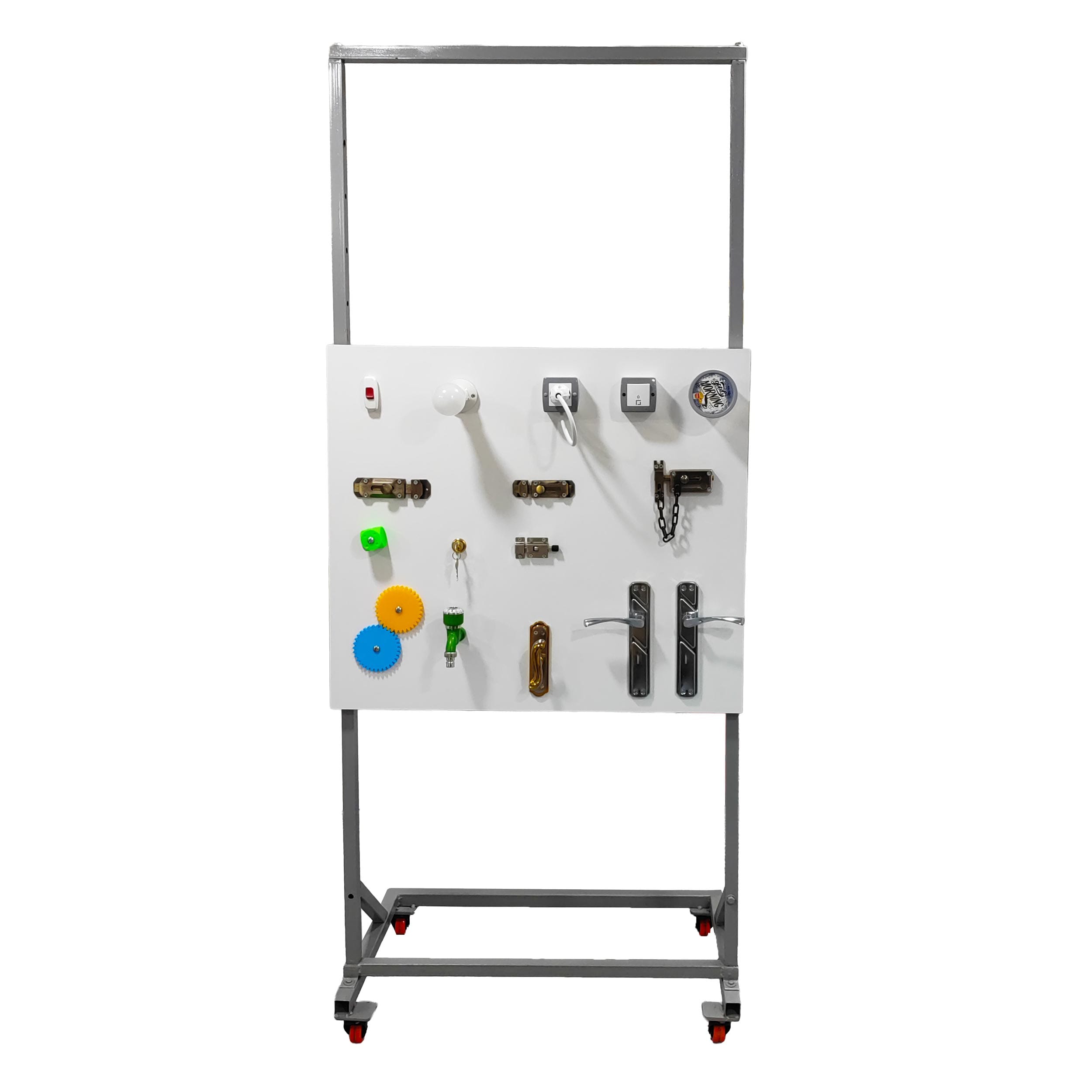 Ce panneau d’ergothérapie ergonomique, fixé sur un socle en métal robuste et réglable en hauteur, est conçu pour la rééducation des membres supérieurs. Équipé de 16 éléments fonctionnels recréant des gestes du quotidien (Ampoule, Interrupteur, Prise électrique, Verrou, Loquet, clef, Dé, Poignées de porte, Poignée fenêtre, Robinet, etc.), il aide les patients à améliorer leur motricité et leur autonomie.